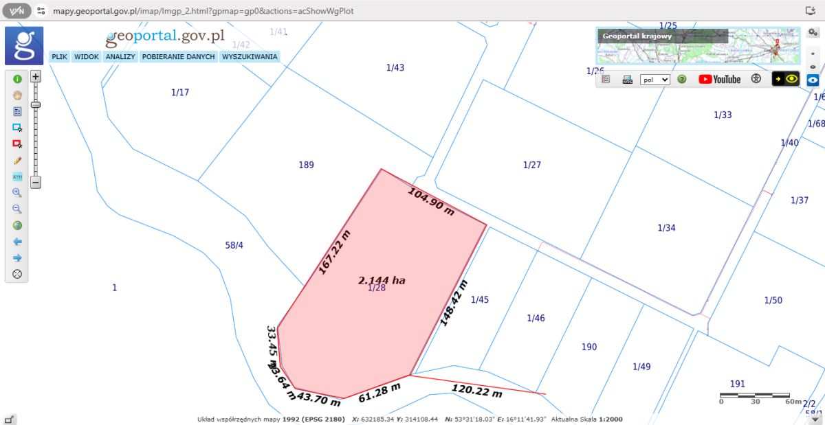 - działka numer 189 o powierzchni 1.8189 ha w cenie 40 zł/m2