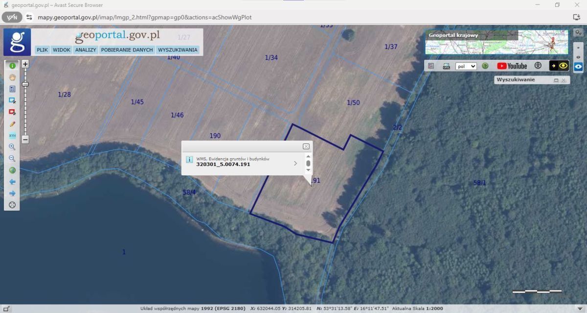 - działka numer 191 o powierzchni 1.3691 ha w cenie 55 zł/m2