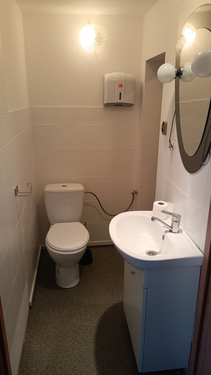 Lokal składa się z dużego frontowego pomieszczenia (około 20m2) z przeszklonymi oknami, drugiego pomieszczenia (około 20m2), trzecie pomieszczenie (około16 m2),oraz toalety, za którą znajduje się mały magazyn (około 4 m2). Lokal w stanie gotowym do rozpoczęcia działalności, wysokość pomieszczeń około 2,60m.