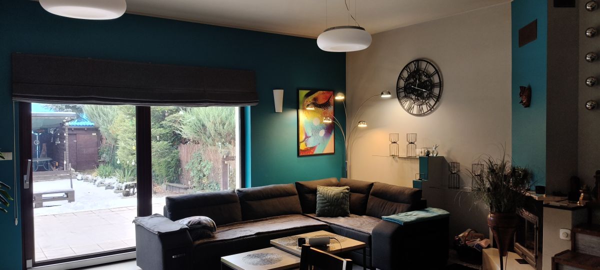 Duży, słoneczny salon z kominkiem i rozprowadzonym nawiewem ciepłego powietrza to idealne miejsce na codzienne spotkania i relaks. Z salonu można wyjść na taras oraz do prywatnego ogrodu, tworząc idealne warunki do odpoczynku i spędzania wolnego czasu na świeżym powietrzu. Na końcu działki zadaszone miejsce z grilem, oraz domek gospodarczy na narzędzia ogrodowe.