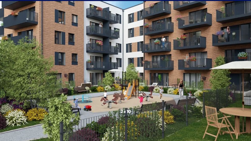 - rozbudowana infrastruktura rekreacyjna - plac zabaw, zielone alejki spacerowe, strefa relaksu,
