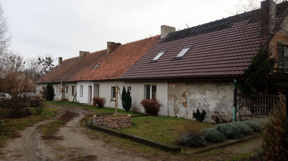 Pierwszym elementem jest niezależny segment mieszkalny, składający się z parteru i piętra, z własnym wejściem. Na parterze znajdziemy jasną kuchnię, łazienkę, przestronny pokój oraz pomieszczenie z piecem centralnego ogrzewania na opał stały. Na piętrze z kolei mieszczą się dwa pokoje, łazienka oraz korytarz. Budynek z cegły, datowany na lata 1950-55, ma powierzchnię 61,8 m² i wymaga remontu, co daje duży potencjał aranżacyjny. Jasne i słoneczne wnętrza, okna PCV od południa oraz nowe połaciowe okna na poddaszu zapewniają przyjazną atmosferę. Lokal jest obecnie wynajmowany i stanowi doskonałą okazję inwestycyjną. Centralne ogrzewanie jest rozprowadzone i sprawne, a mieszkańcy dbają o stan techniczny swojego fragmentu budynku.