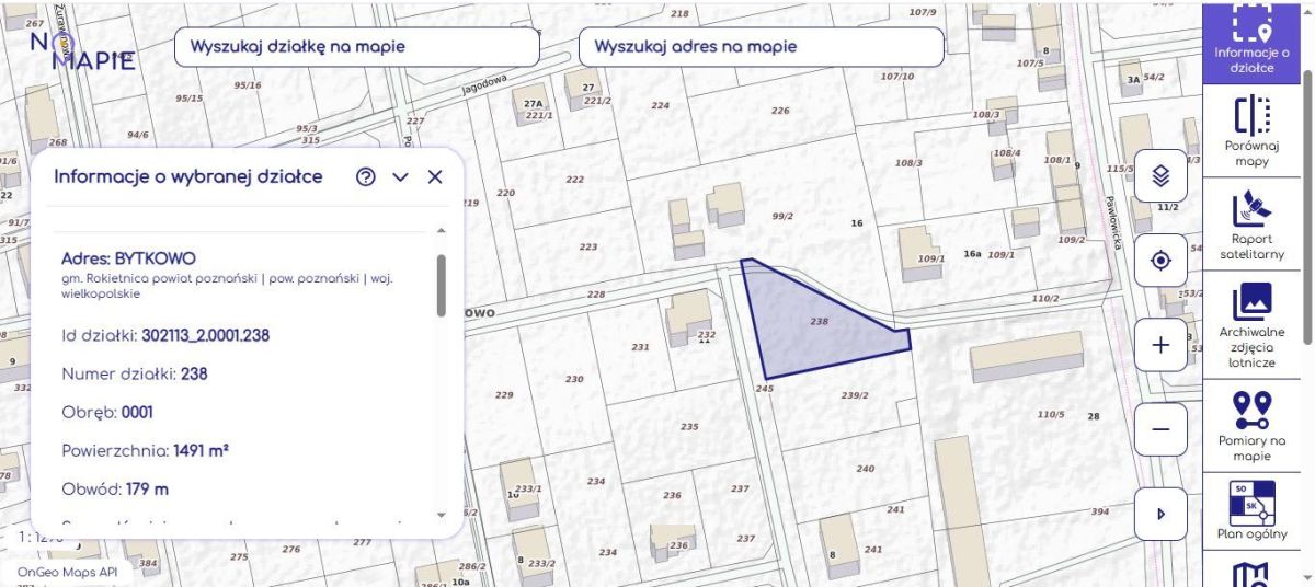 | Kształt działki | prostokat |